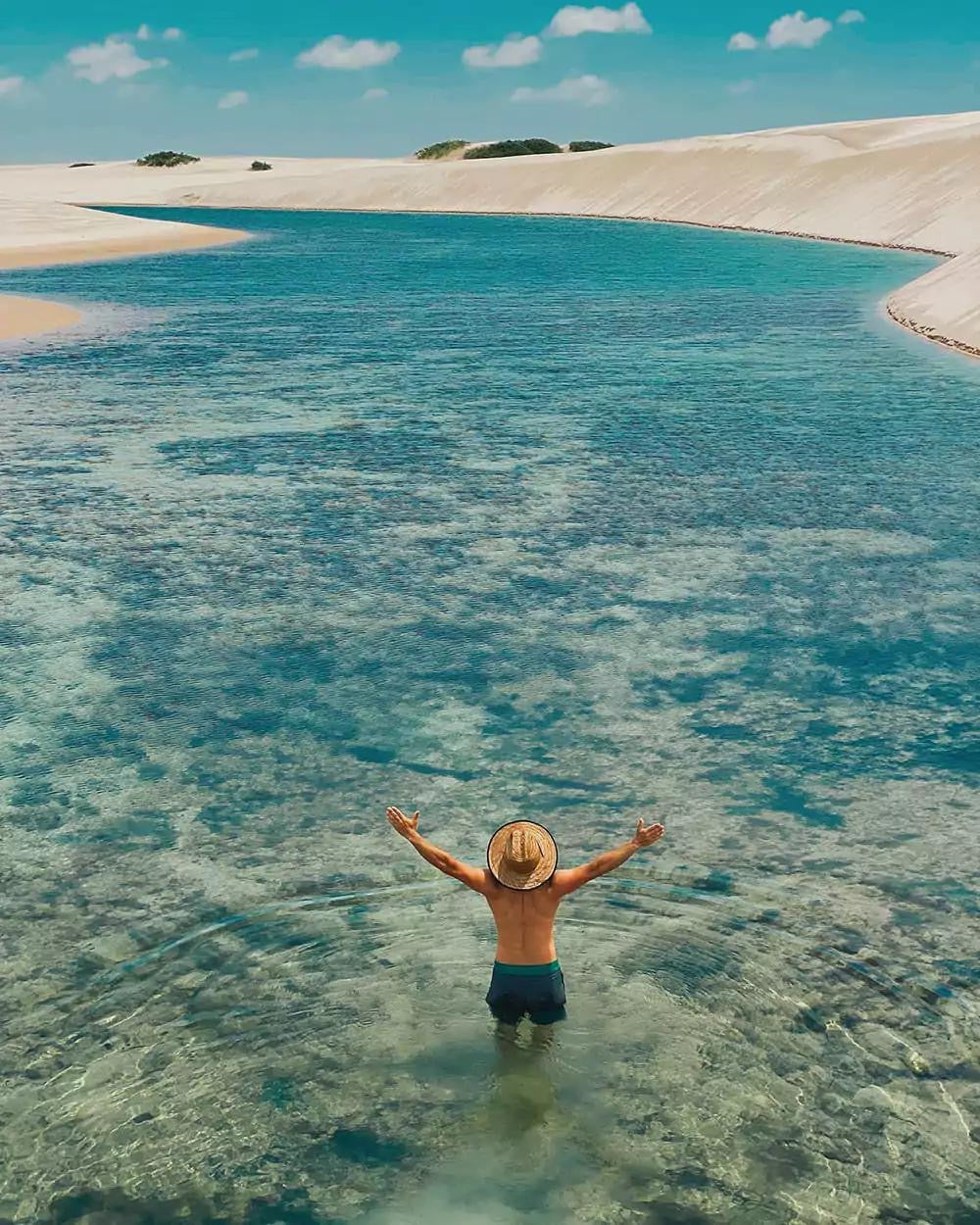But beyond these key regions, there is one place that holds a deeply personal significance for Luiz Silva Santos, founder of Brothers of Açaí, the breathtaking Lençóis Maranhenses. Located in the state of Maranhão, this unique national park sits just outside the main Amazon basin. It’s famous for its rolling white sand dunes and crystal-clear freshwater lagoons that appear during the rainy season, creating a surreal and unforgettable landscape.
